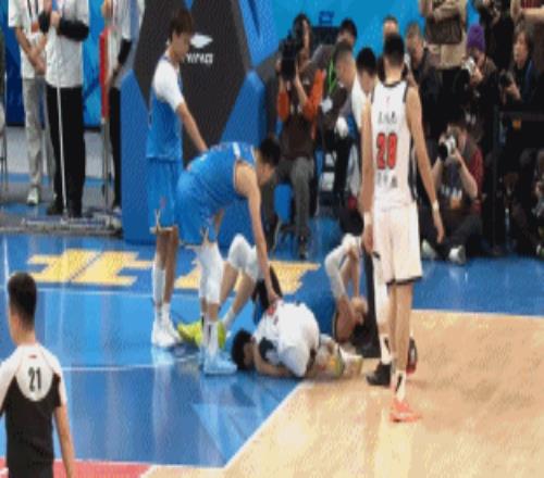 徐杰是第二节还是4分多钟时,被周琦意外撞倒的,作为大中锋,周琦体重巨大,撞到徐杰的膝盖和脚踝,让后者痛苦不堪,随后倒地不起。在徐杰受伤后,北京队立马停止了进攻,有2位北京球员更是立马采取行动,对徐杰进行关心。首先是作为前队友的赵睿,他看到徐杰受伤,指了指后,将倒地的周琦拉起,然后蹲下来慰问徐杰的情况,并紧急招手呼叫队医过来。